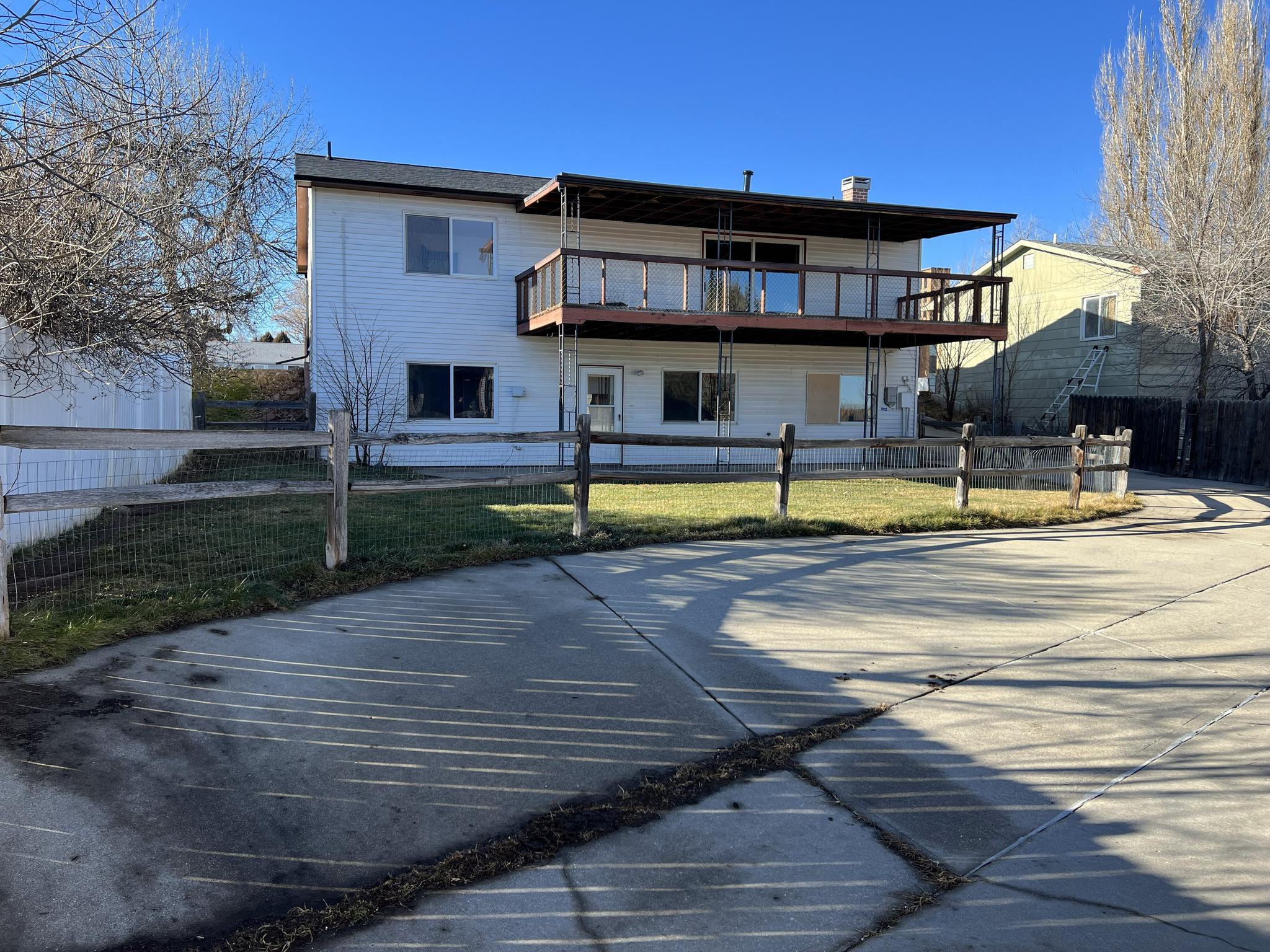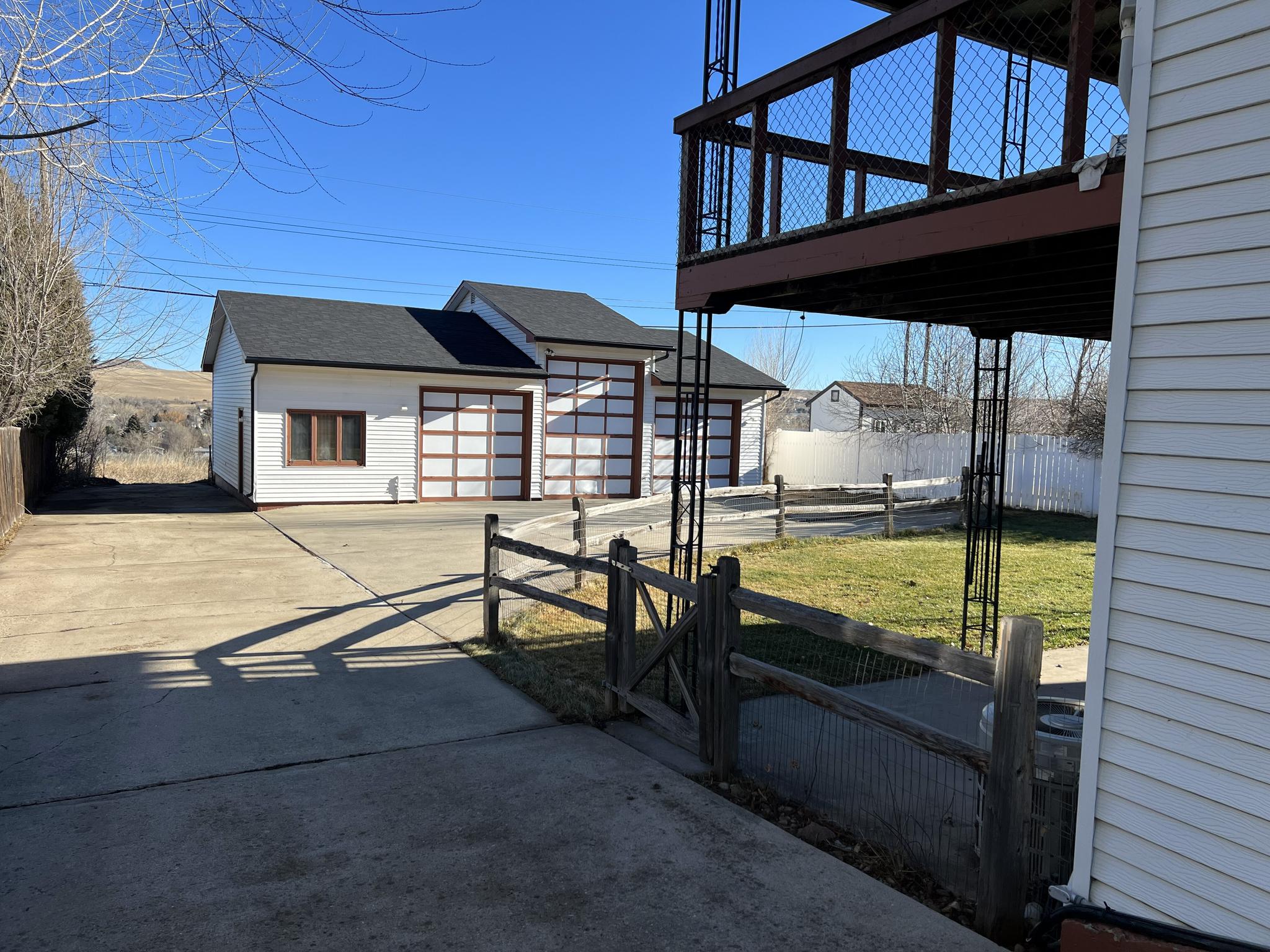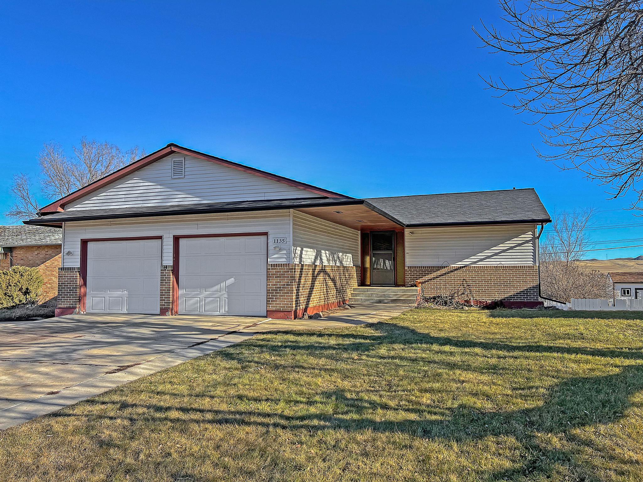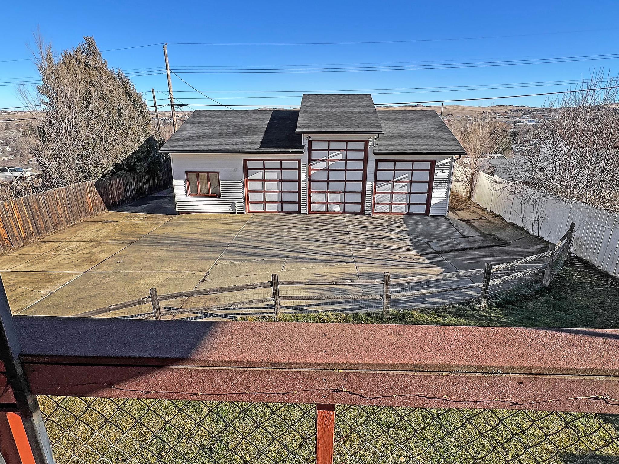 Ranch-style home with a walk-out basement, attached two-car garage, and a large detached shop. This 3-bedroom, 2-bath residence features a new furnace and new roof. The upper-level living room includes sliding glass doors that open to a covered deck with scenic views of the eastern hills of Sheridan. The property offers a fenced backyard with an underground sprinkler system. The detached shop measures 44' x 32', totaling approximately 1,408 square feet, and is equipped with a walk-in door and three overhead doors—one 12-foot door and two 9-foot doors—providing excellent access for vehicles, equipment, or recreational storage. An overhead heater keeps the shop comfortable year-round. A rear concrete driveway provides ample additional off-street parking behind the home.
