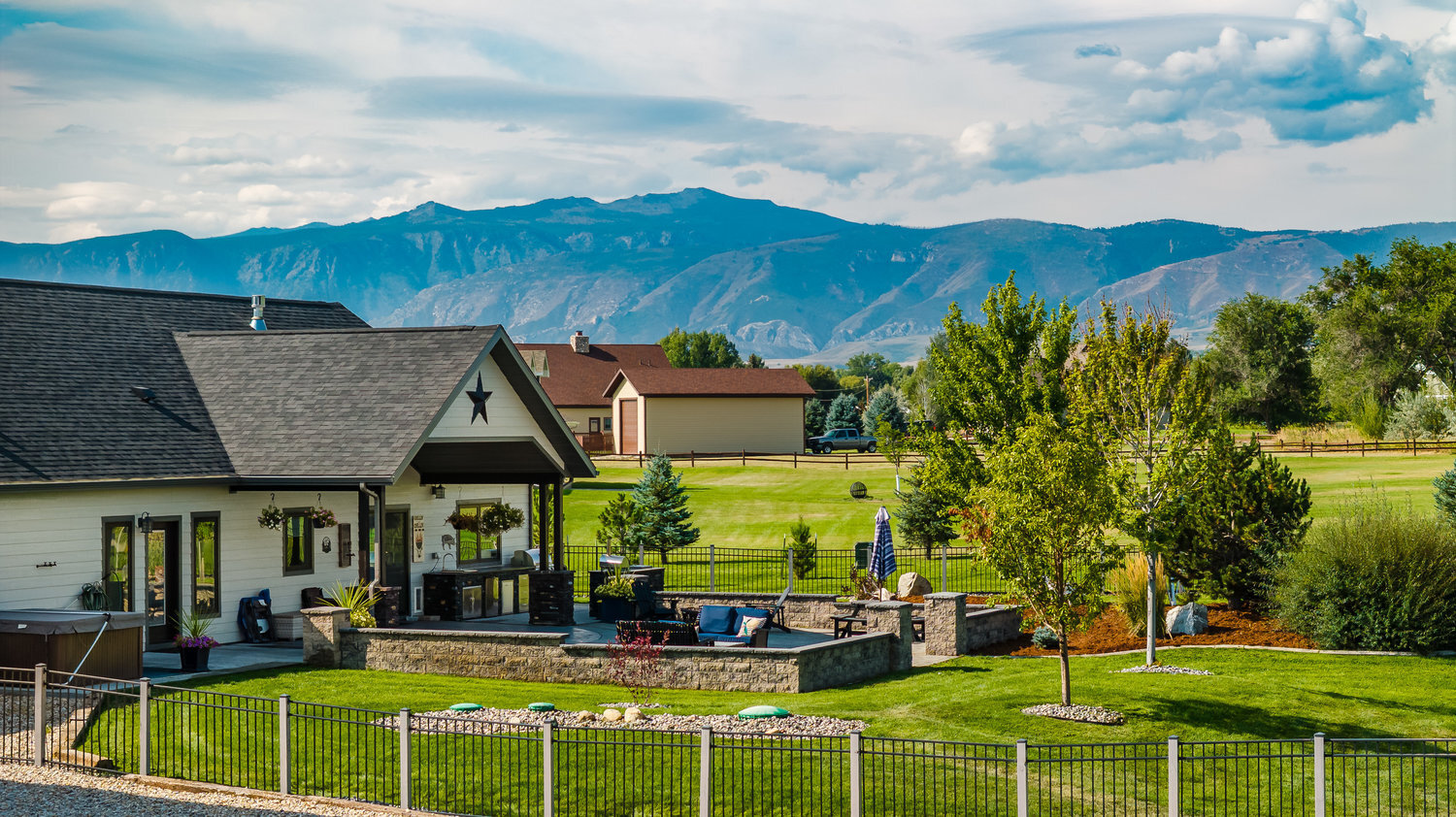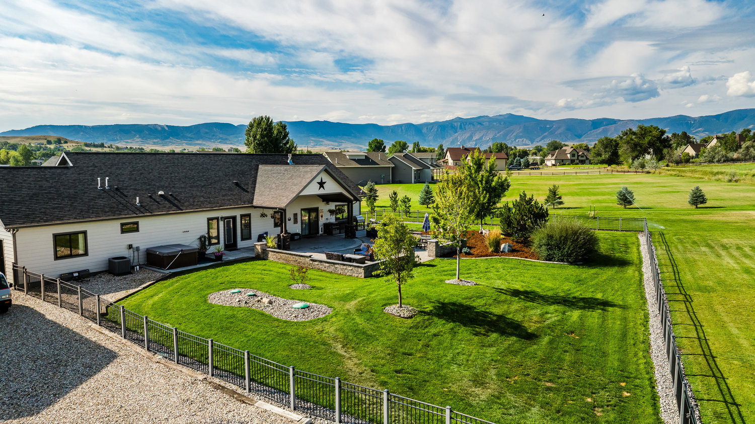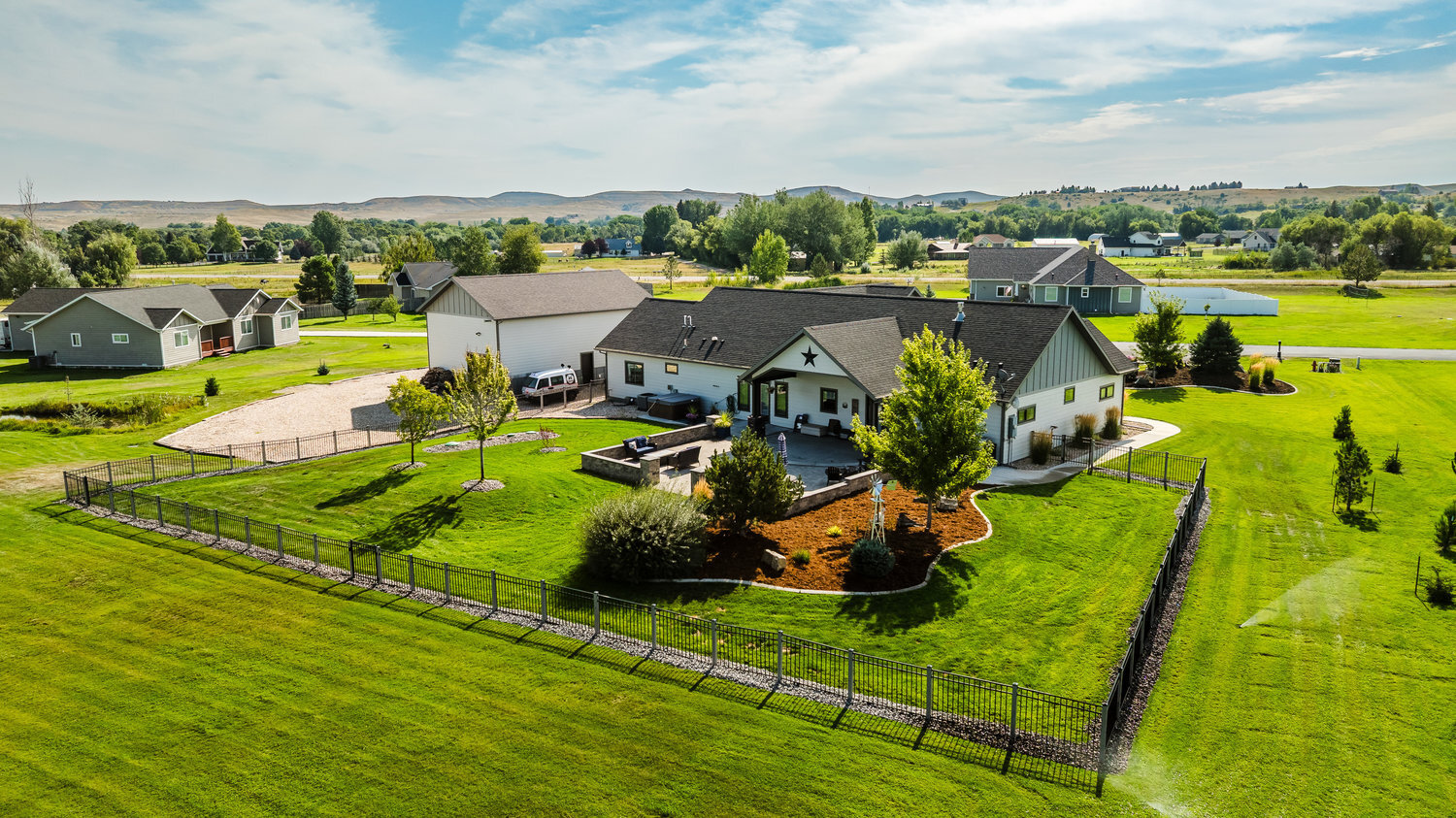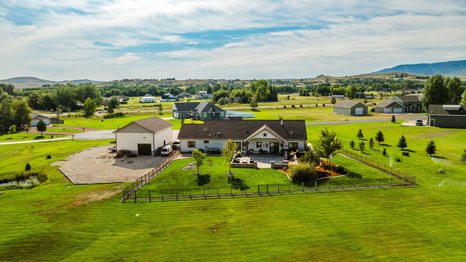 Beautiful custom home on 2.2 meticulously landscaped acres in the highly sought-after Big Horn School District! Thoughtfully designed with custom granite finishes and a well-appointed kitchen. The main level offers Jack & Jill bedrooms and a luxurious master suite with dual closets, double-sink granite vanity, dual shower heads, and skylight. A dedicated office and large bonus room provide flexible living space. The home includes a heated double-car garage, single-car garage with 50-amp power, and a 26′×40′ insulated shop with 14′ RV door, pass-through bays, floor drain, and RV hookups. Outside, enjoy a paved patio with built-in firepit, outdoor kitchen, and hot-tub pad surrounded by mature trees, a fenced yard, in-ground sprinklers, and a decorative waterfall.