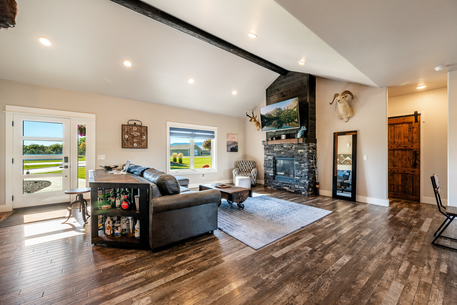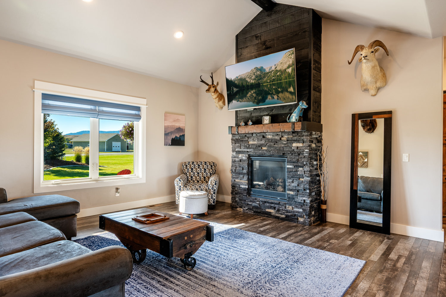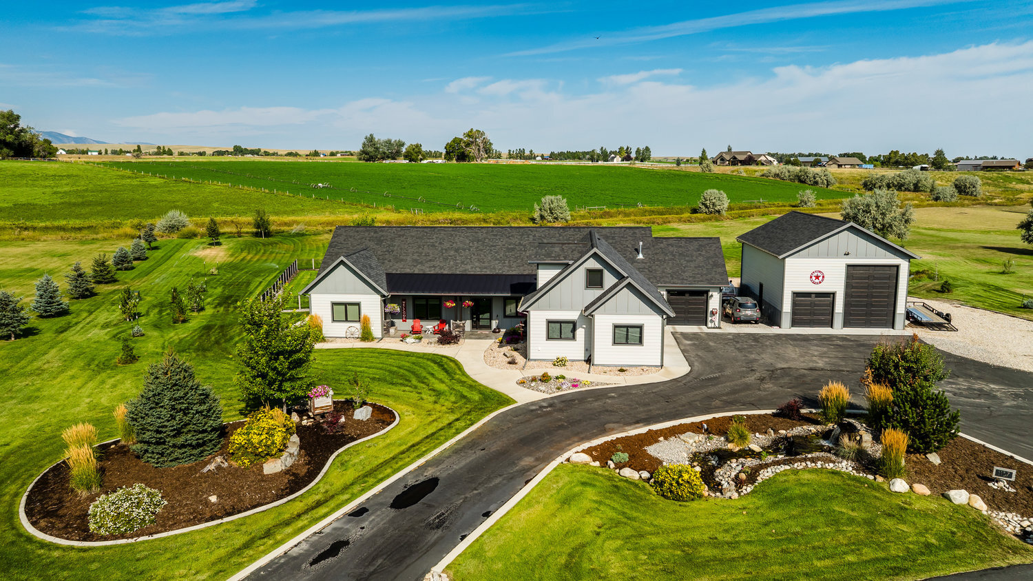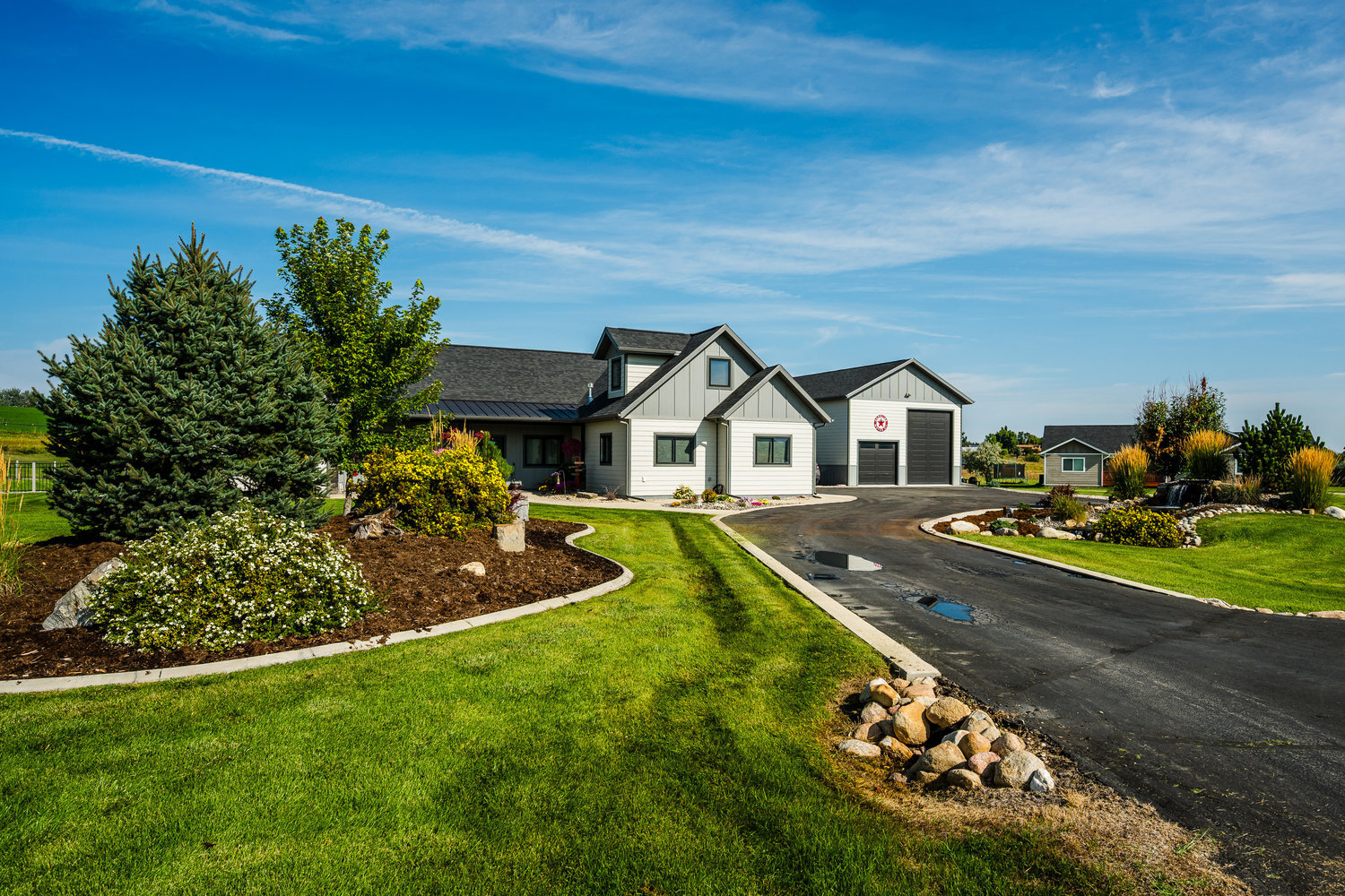 Beautiful custom home on 2.2 meticulously landscaped acres in the highly sought-after Big Horn School District! Thoughtfully designed with custom granite finishes and a well-appointed kitchen. The main level offers Jack & Jill bedrooms and a luxurious master suite with dual closets, double-sink granite vanity, dual shower heads, and skylight. A dedicated office and large bonus room provide flexible living space. The home includes a heated double-car garage, single-car garage with 50-amp power, and a 26′×40′ insulated shop with 14′ RV door, pass-through bays, floor drain, and RV hookups. Outside, enjoy a paved patio with built-in firepit, outdoor kitchen, and hot-tub pad surrounded by mature trees, a fenced yard, in-ground sprinklers, and a decorative waterfall.