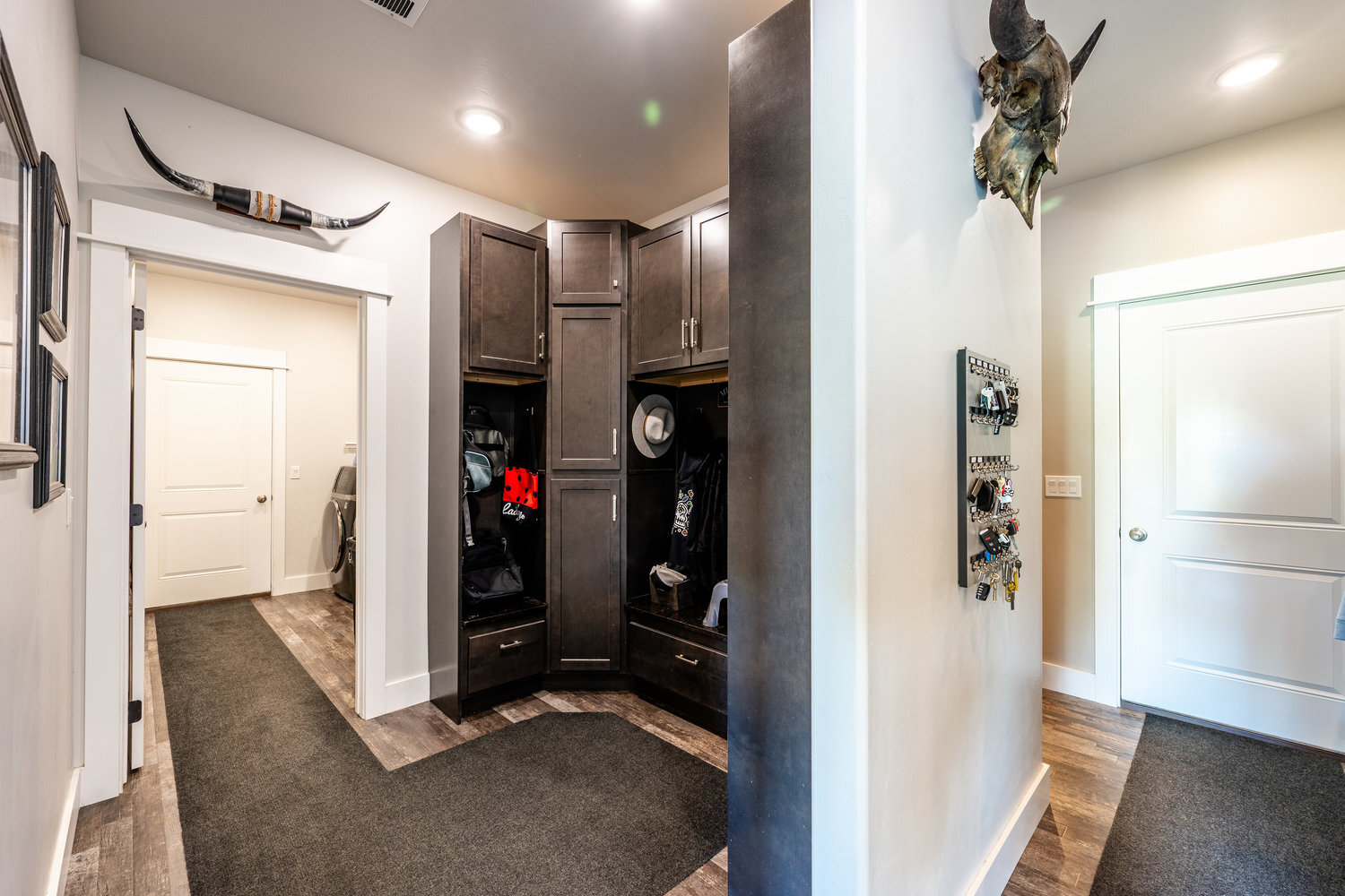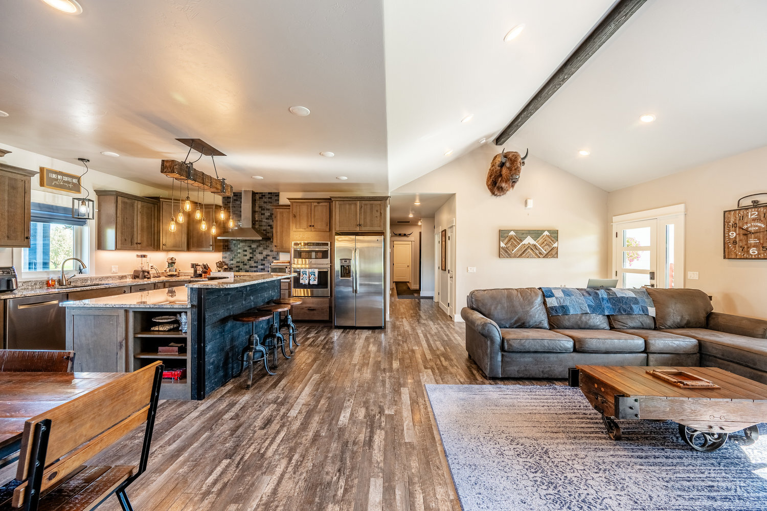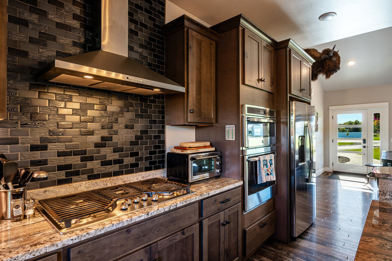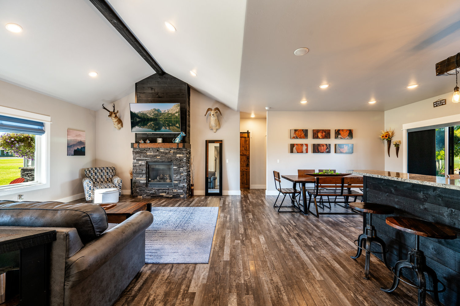Beautiful custom home on 2.2 meticulously landscaped acres in the highly sought-after Big Horn School District! Thoughtfully designed with custom granite finishes and a well-appointed kitchen. The main level offers Jack & Jill bedrooms and a luxurious master suite with dual closets, double-sink granite vanity, dual shower heads, and skylight. A dedicated office and large bonus room provide flexible living space. The home includes a heated double-car garage, single-car garage with 50-amp power, and a 26′×40′ insulated shop with 14′ RV door, pass-through bays, floor drain, and RV hookups. Outside, enjoy a paved patio with built-in firepit, outdoor kitchen, and hot-tub pad surrounded by mature trees, a fenced yard, in-ground sprinklers, and a decorative waterfall.