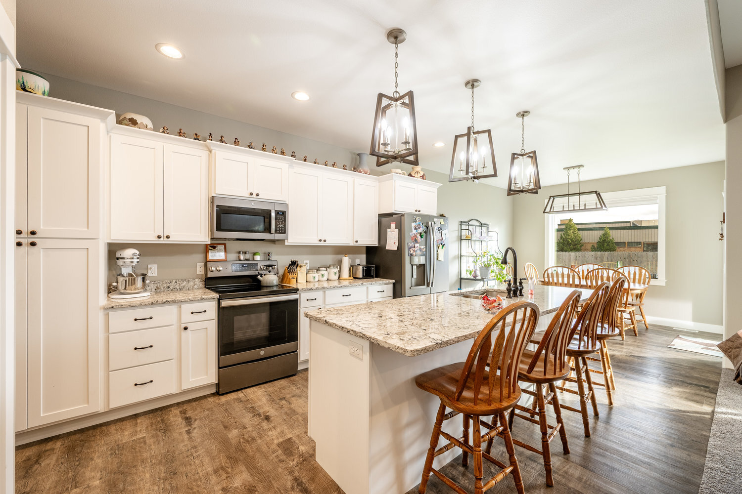 Welcome to this modern-farmhouse charmer in one of Ranchester's most desirable neighborhoods. With crisp white siding, black accents, and clean lines, this 1,903 sq ft home makes a great first impression. Inside, you'll find 3 bedrooms, 2 bathrooms, and a dedicated office. The open living area is warm and inviting with a gas fireplace, natural light, and easy flow into the kitchen with granite countertops and quality cabinetry. Outside features a fenced yard with mountain views and a rare 3-car garage. A perfect blend of style, comfort, and function.