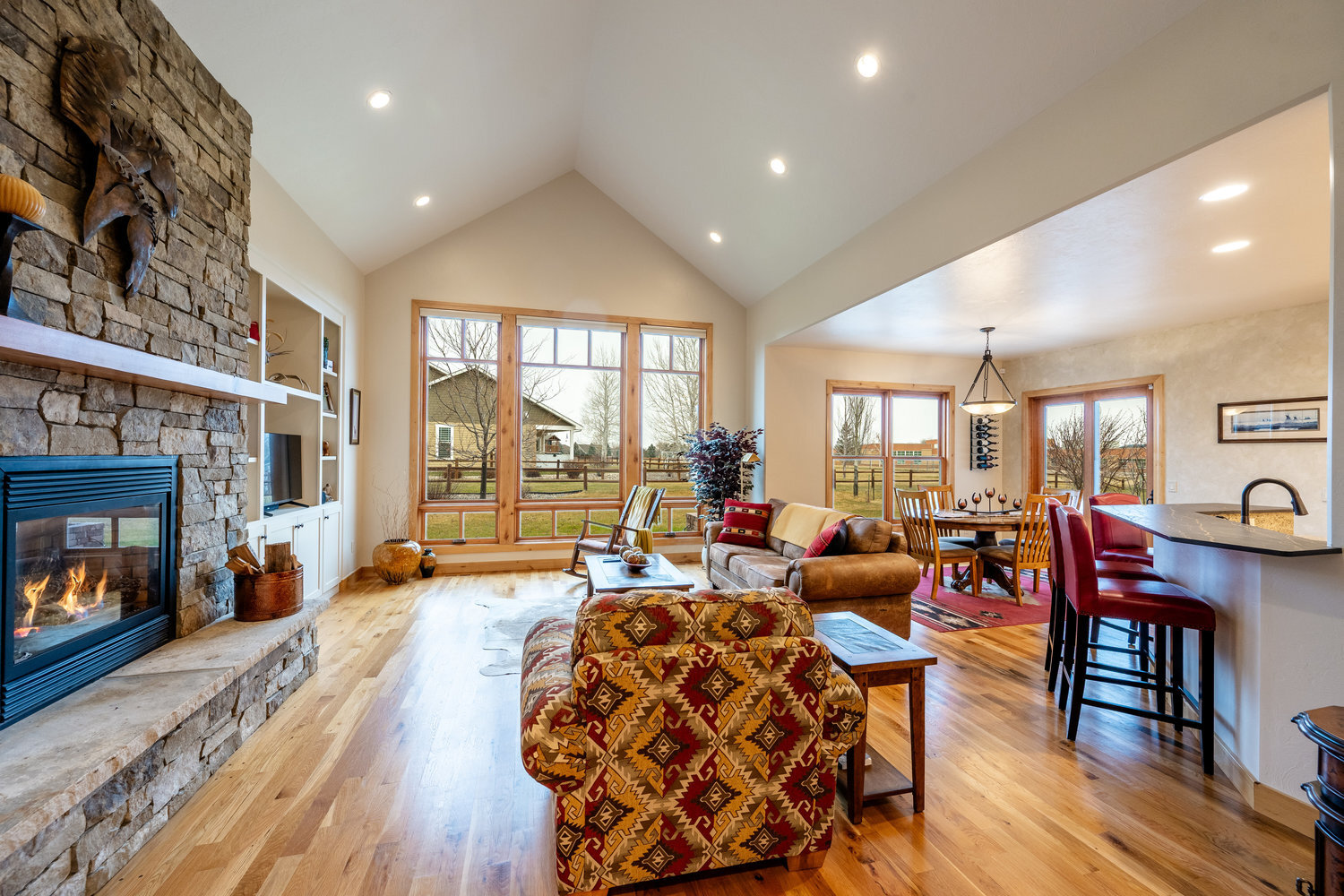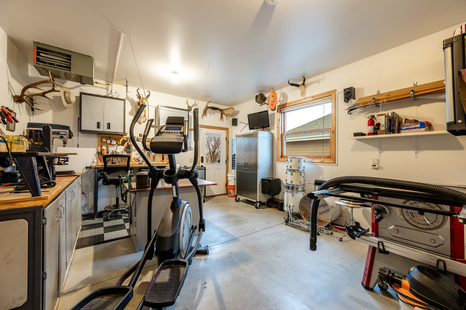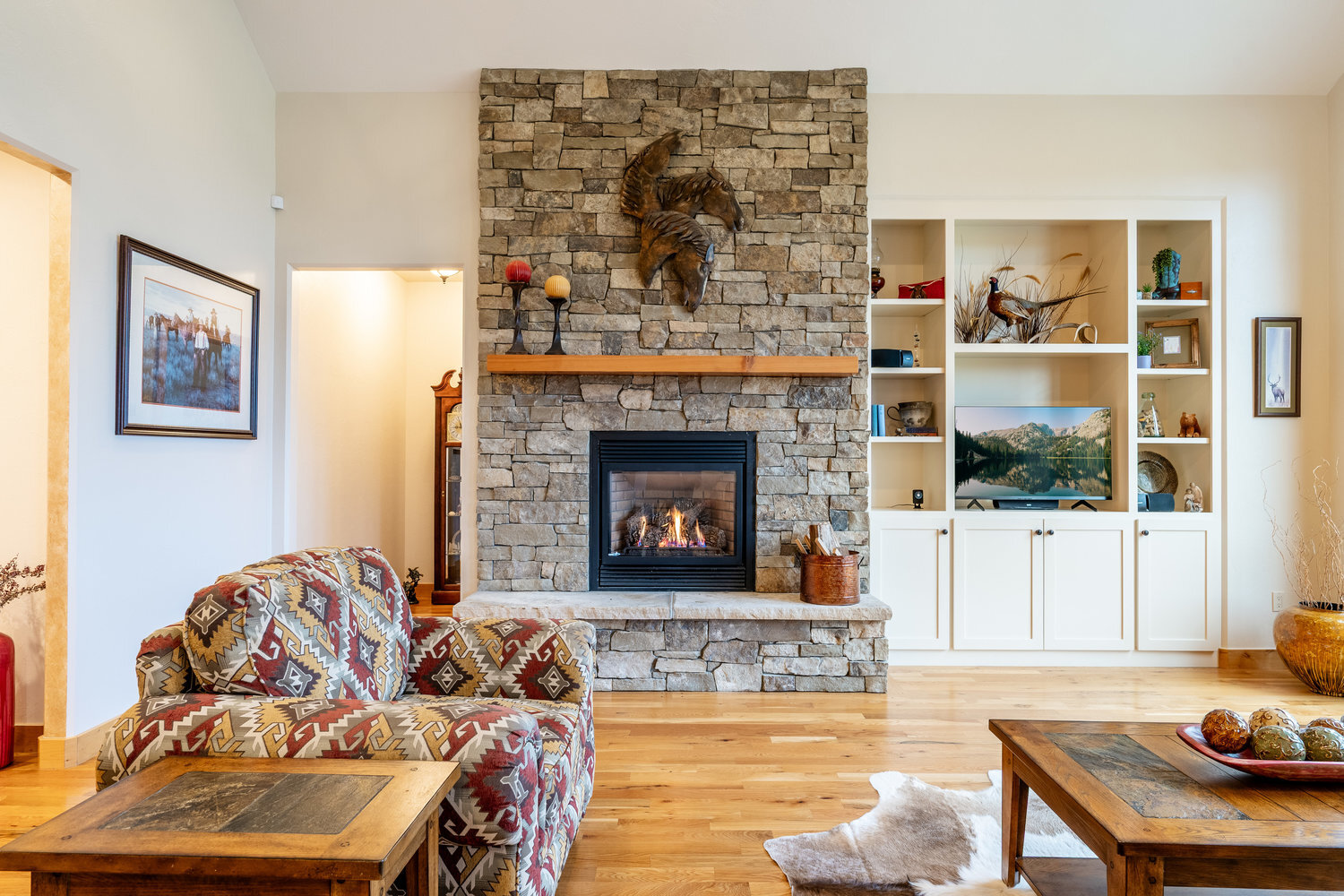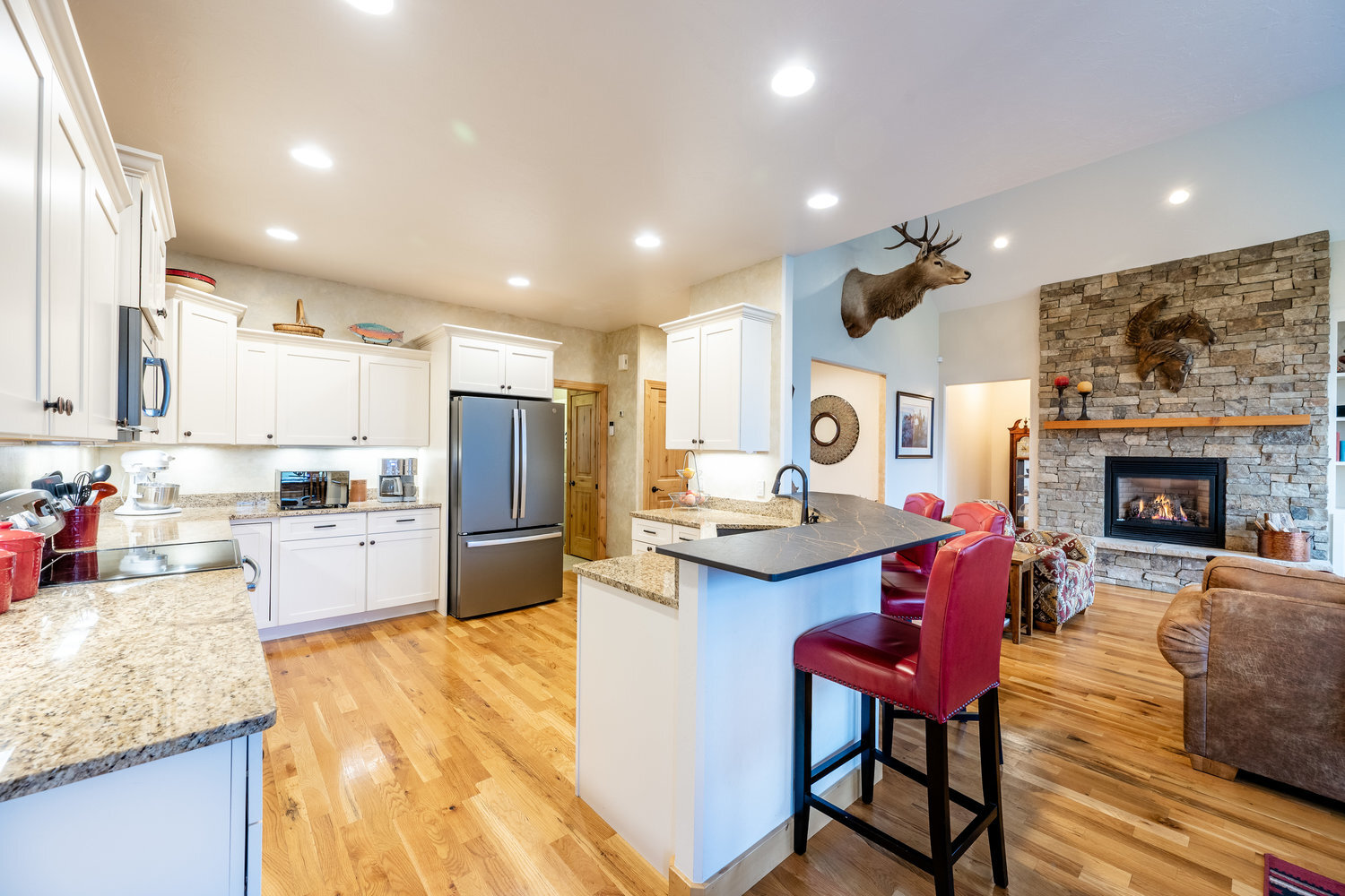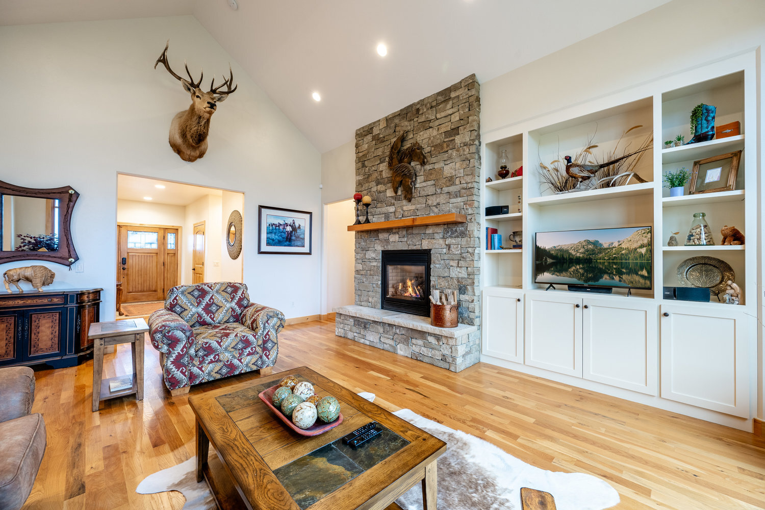 Don't let the 2 Bedrooms listed fool you, this home was built as a 3 Bedroom and could easily be converted back. This stunning ranch style home offers beautiful craftsmanship! You'll love the open concept, hardwood floors, solid wood doors, oversized windows, stone wrapped gas fireplace, and beautiful primary suite. The features don't stop there, this beauty is on a corner lot, the landscaping is immaculately kept and the garage offers an oversized two car in the front and a tandem bay that is ideal for a workshop space! All measurements approximate.