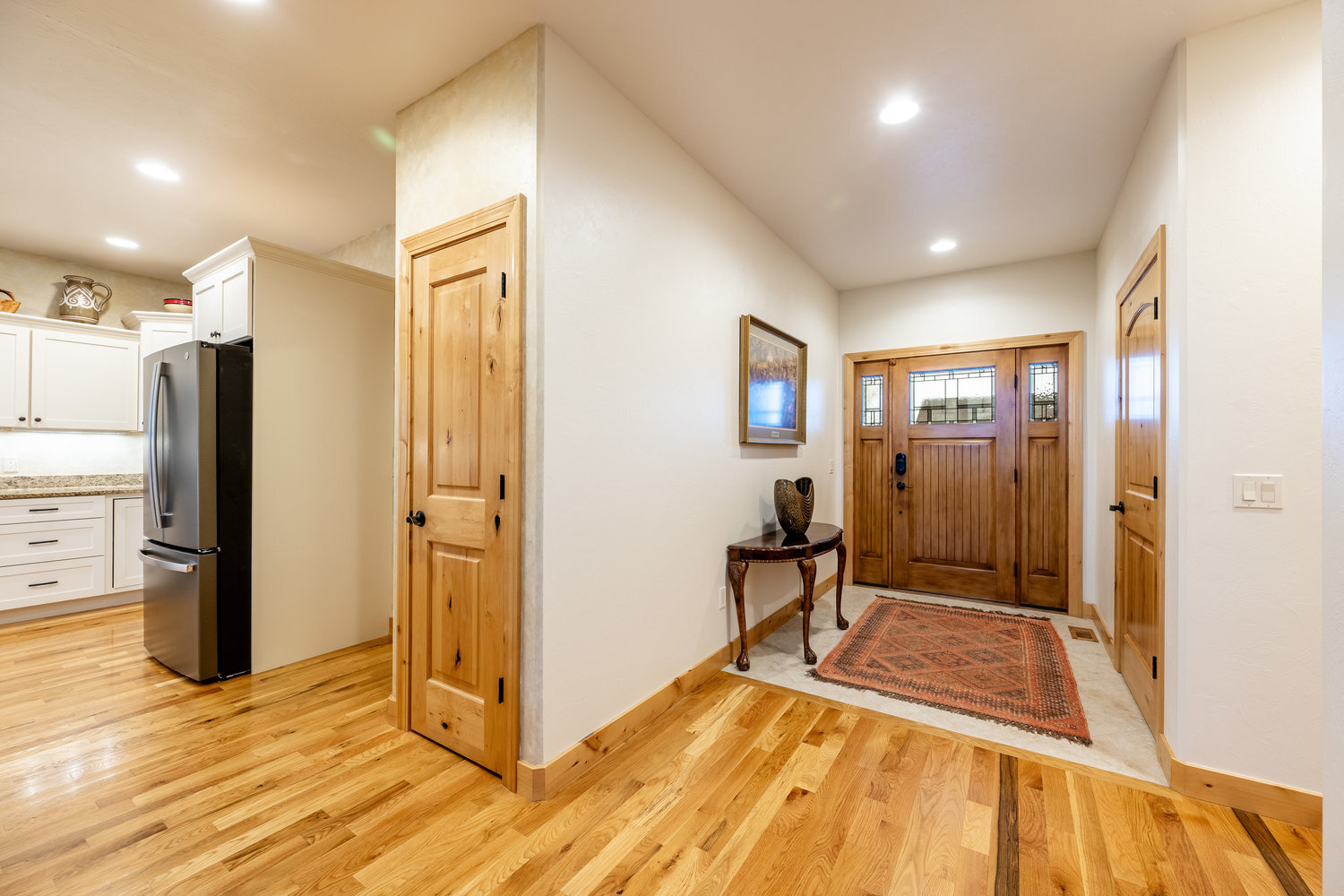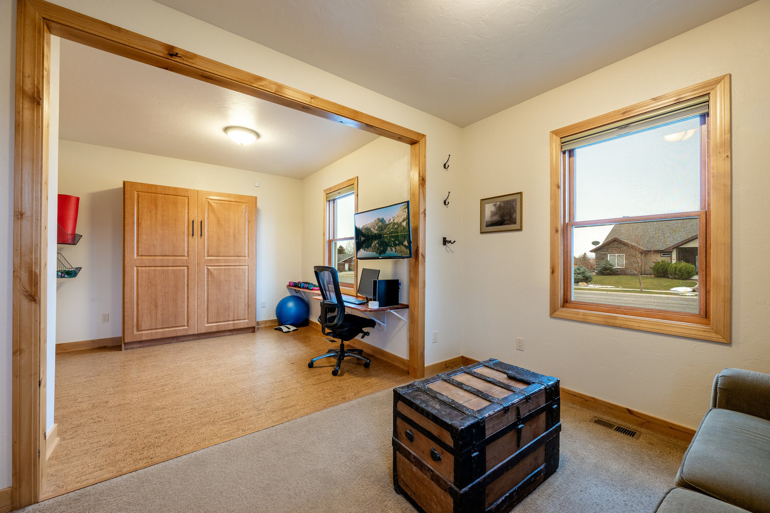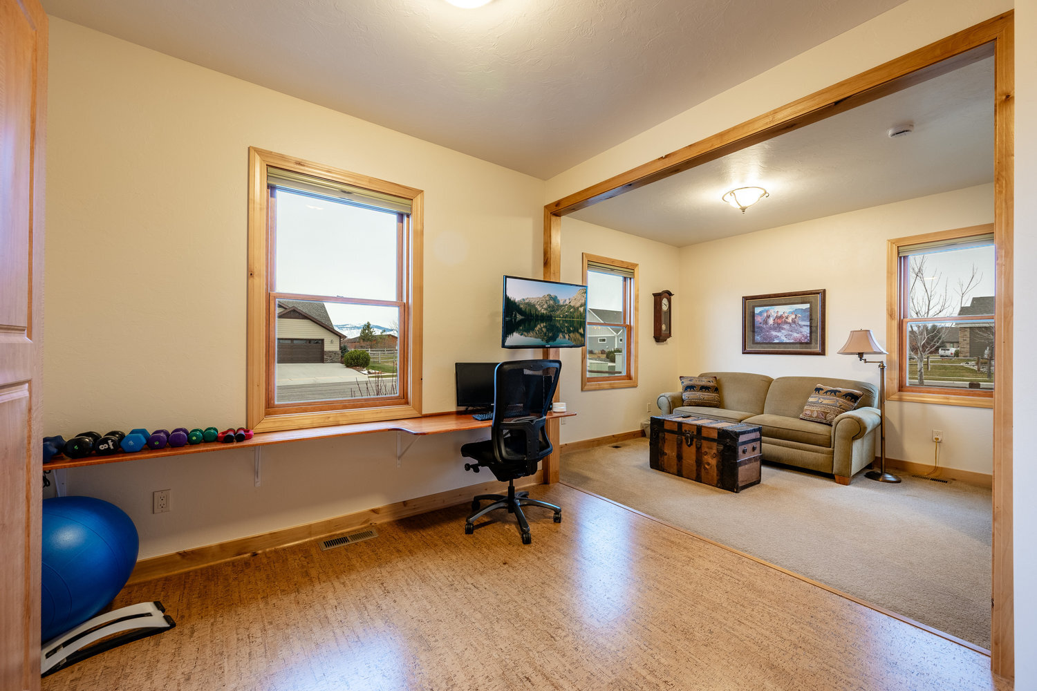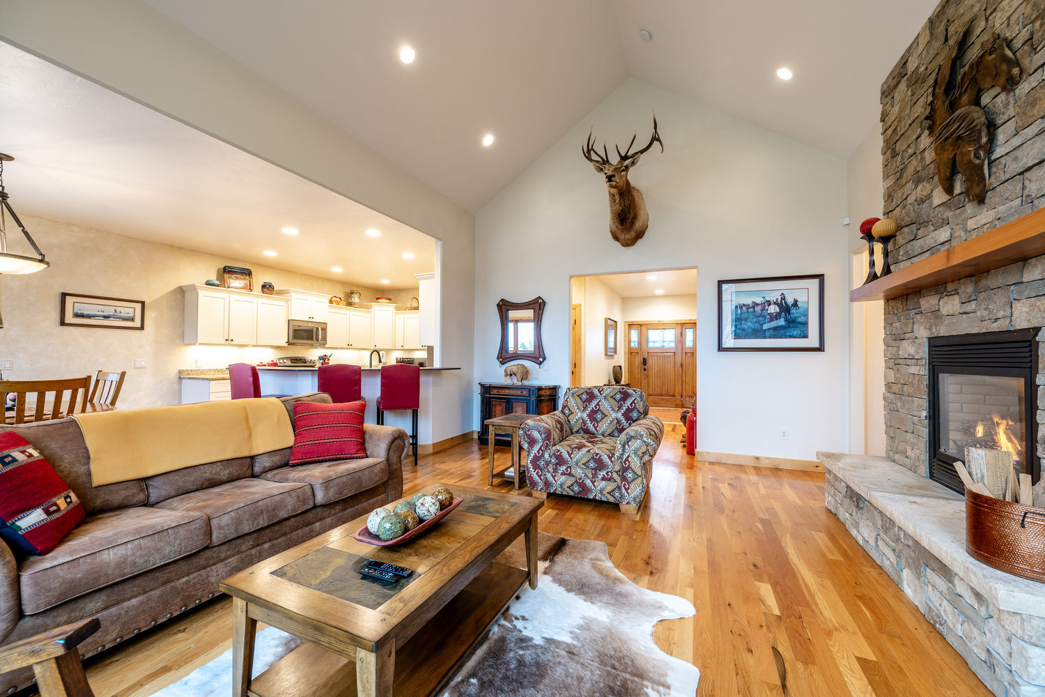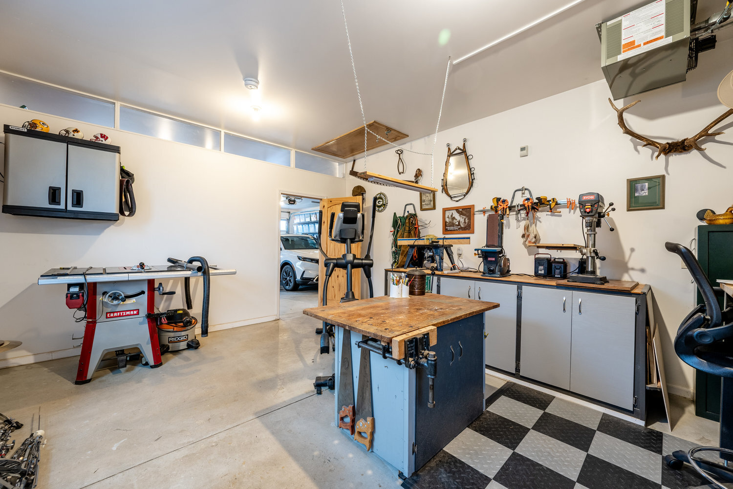 Don't let the 2 Bedrooms listed fool you, this home was built as a 3 Bedroom and could easily be converted back. This stunning ranch style home offers beautiful craftsmanship! You'll love the open concept, hardwood floors, solid wood doors, oversized windows, stone wrapped gas fireplace, and beautiful primary suite. The features don't stop there, this beauty is on a corner lot, the landscaping is immaculately kept and the garage offers an oversized two car in the front and a tandem bay that is ideal for a workshop space! All measurements approximate.