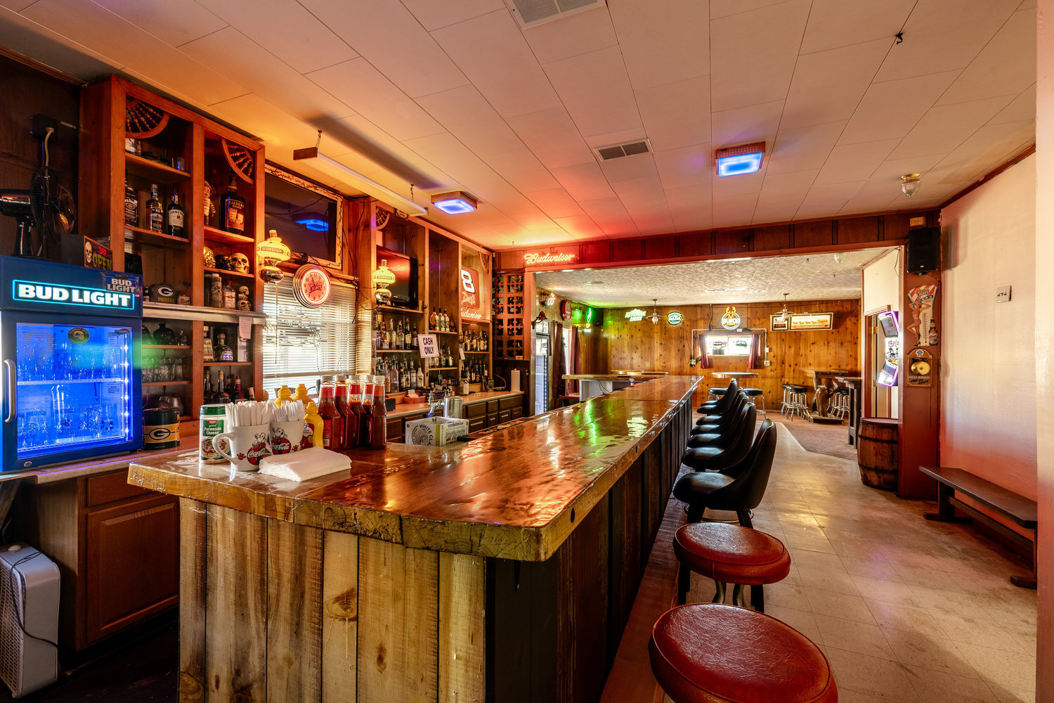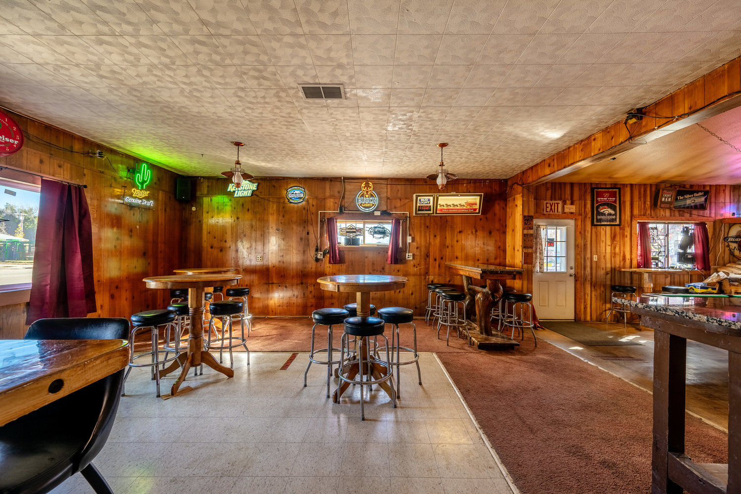 Bring your entrepreneurial vision to life with this mixed-use commercial property, perfectly suited for a bar, restaurant, coffee shop, or professional office space. Whether you're an investor, small business owner, or aspiring restaurateur, this property is ready to go - complete with essential equipment, fixtures and decor. Large covered deck with lights and electricity is the perfect venue for small parties. Attached 2 bedroom, 1 bath home offers convenience and privacy. Living room flows seamlessly under a shared roofline with bar room for easy expansion. Large detached garage (gravel floor) as well as an extended shop (concrete floor) provide utility and storage. Potential for rental income, employee housing or multi-generational living with 1976 mobile home-3 bedroom, 1.5 bathrooms.
