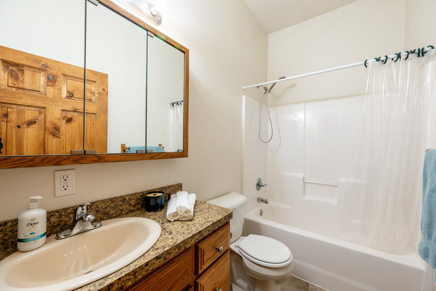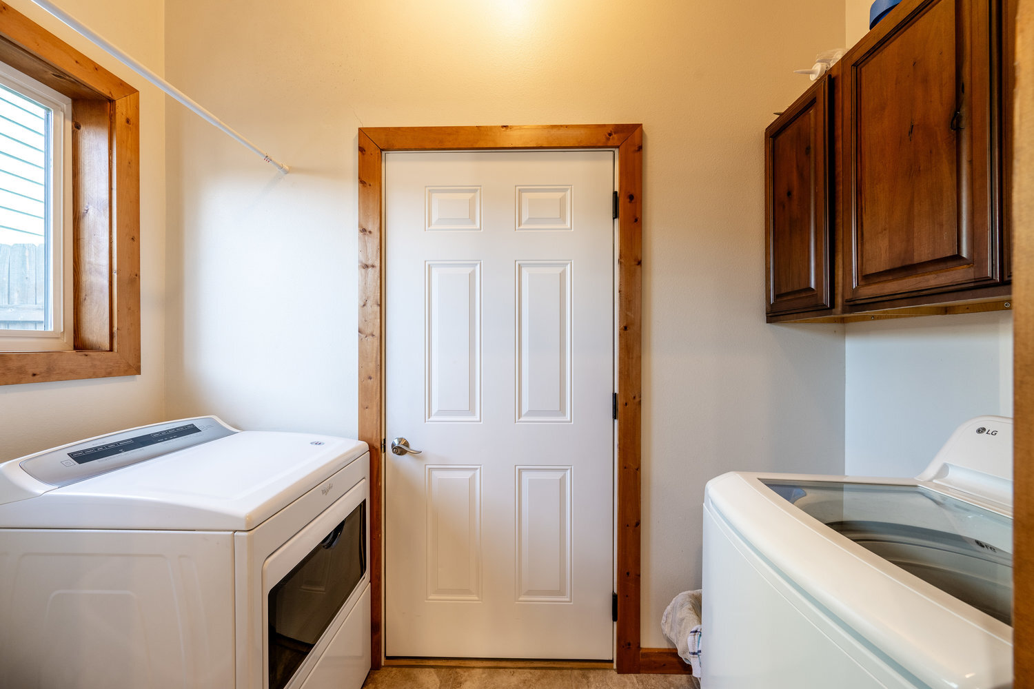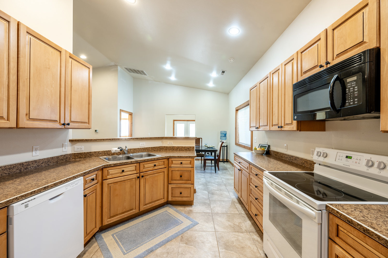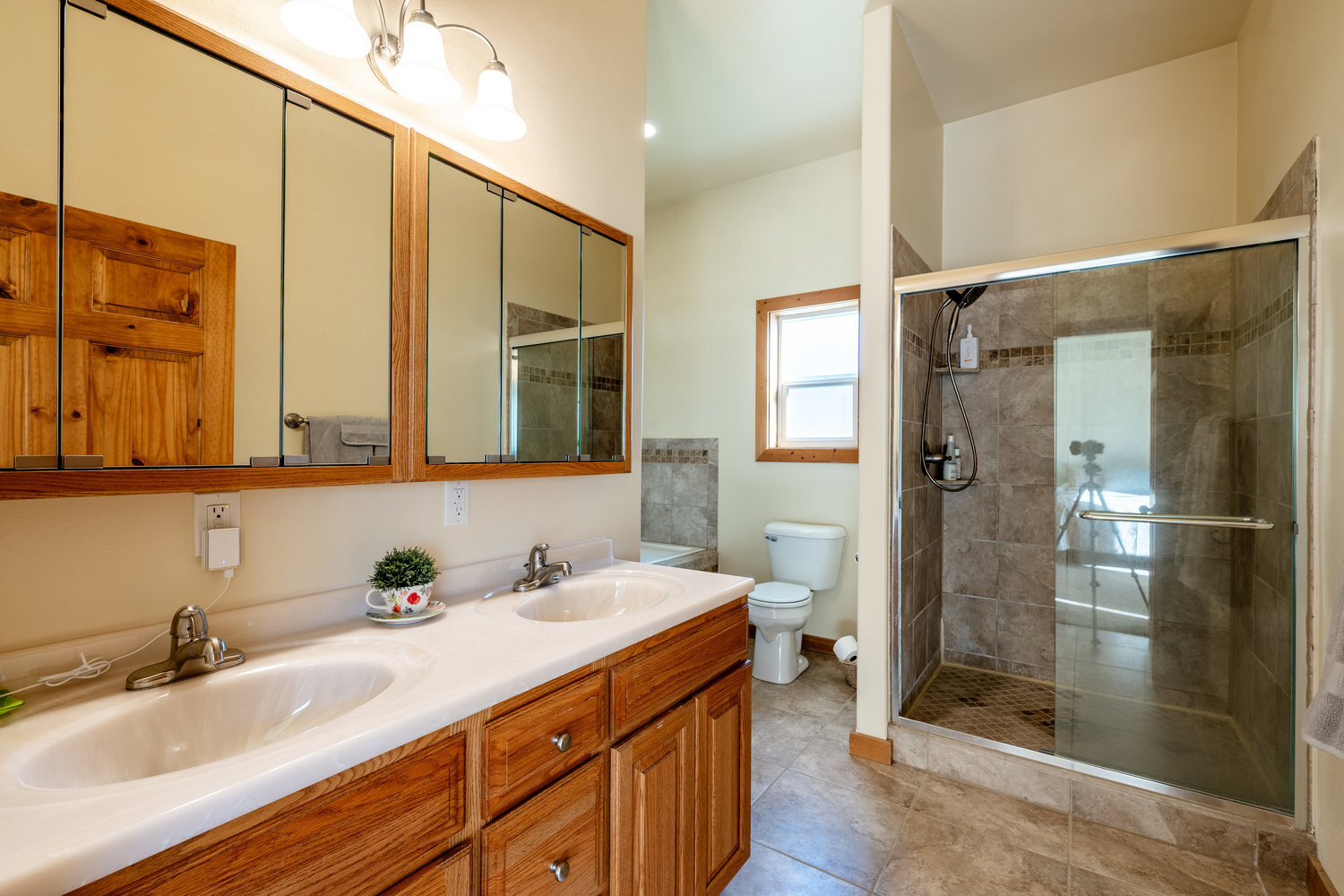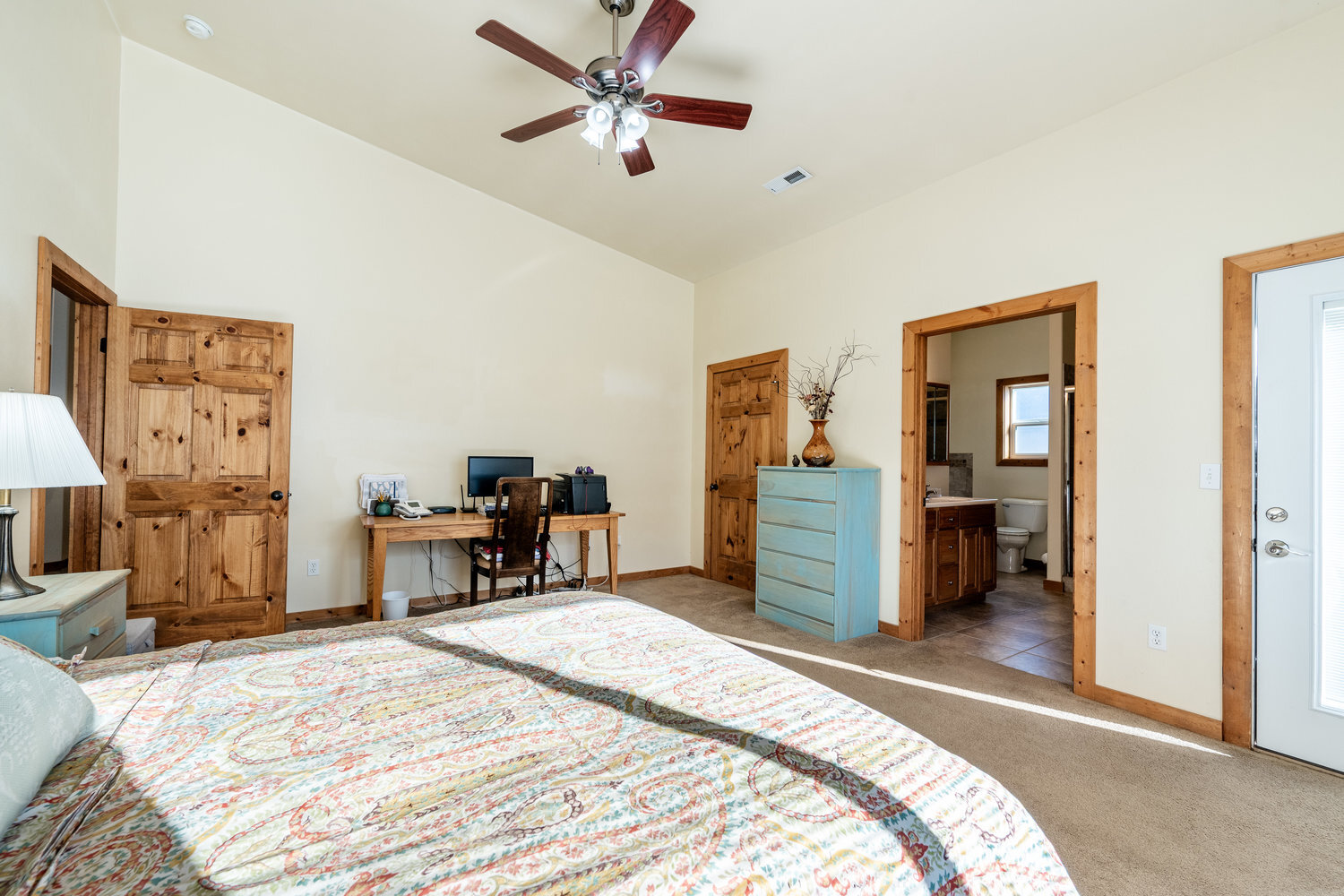 Welcome to this beautifully maintained one-level home nestled in the quaint town of Ranchester. Home is move-in ready with numerous upgrades (furnace & heat pump, north windows, roof, gutters, water heater, and most appliances. Natural gas conversion in 2021). Offering ADA accessibility, this home blends comfort, functionality, and rustic charm. Stamped concrete walkway leads to a custom front door framed with river rock wainscotting. More river rock inside the open concept living space with vaulted ceilings and knotty pine trim & doors. Wood-burning stove adds heat for cozy Wyoming winters. Kitchen features bar seating and Kraft-maid soft close cabinets. Inviting primary suite includes a walk-in closet and spacious four-fixture en-suite. Additional flex space offers versatility - family room, office, or even a fourth bedroom. Access the partially covered back patio through this space or the primary. Fully fenced back yard is ideal for children or pets, but can easily be accessed through the large gate for storing those ATV's. Custom-built storage shed adds convenience and utility. Located across from Rotary Park Pond with easy access to walking paths and TR Elementary, this home is perfectly positioned for both relaxation and community connection.