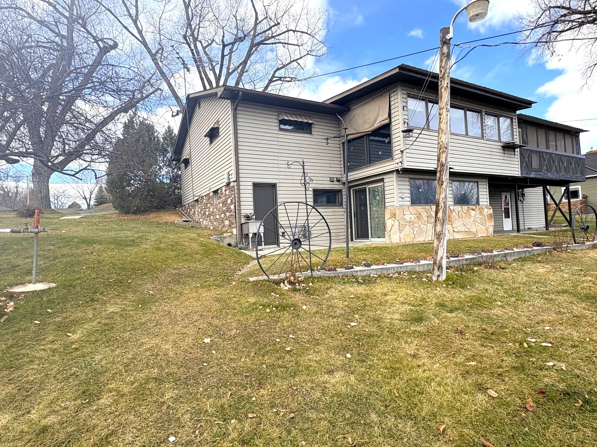Unique property with many possibilities!!!! Convenient location to downtown, extra-large lot, zoned B1! This charming home sits on just under one acre. Tons of garage/shop space and plenty of room to build more. Currently the home is set up for multi-family living with 2BR/2BA on the main level, second bath features a new large walk-in shower, rock fireplace, hot water gas heat, sunroom, screened in porch with plumbed gas grill, workshop and attached garage. The lower level offer 2BR/1BA, kitchen, dining, living room, new walk-in shower, extra storage room, sunroom and two separate entrances. The home is well built with an abundance of storage, large closets with shelves, large pantry, and two separate laundry areas. Outside there is plenty of extra garage space for parking, storage or work space. You will find a covered carport, large enough to accommodate an RV, deer fenced garden area with raised bed/boxes, large backyard with a variety of mature evergreen, deciduous and fruit trees, totally fenced with easy access from the alley. This property could be used as a single-family home, rental, Airbnb or offer plenty of space for a business. Take advantage of an outstanding investment opportunity or enjoy a large single family home.