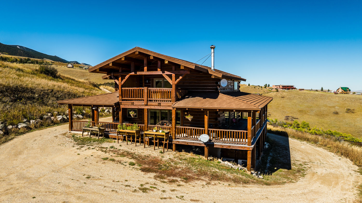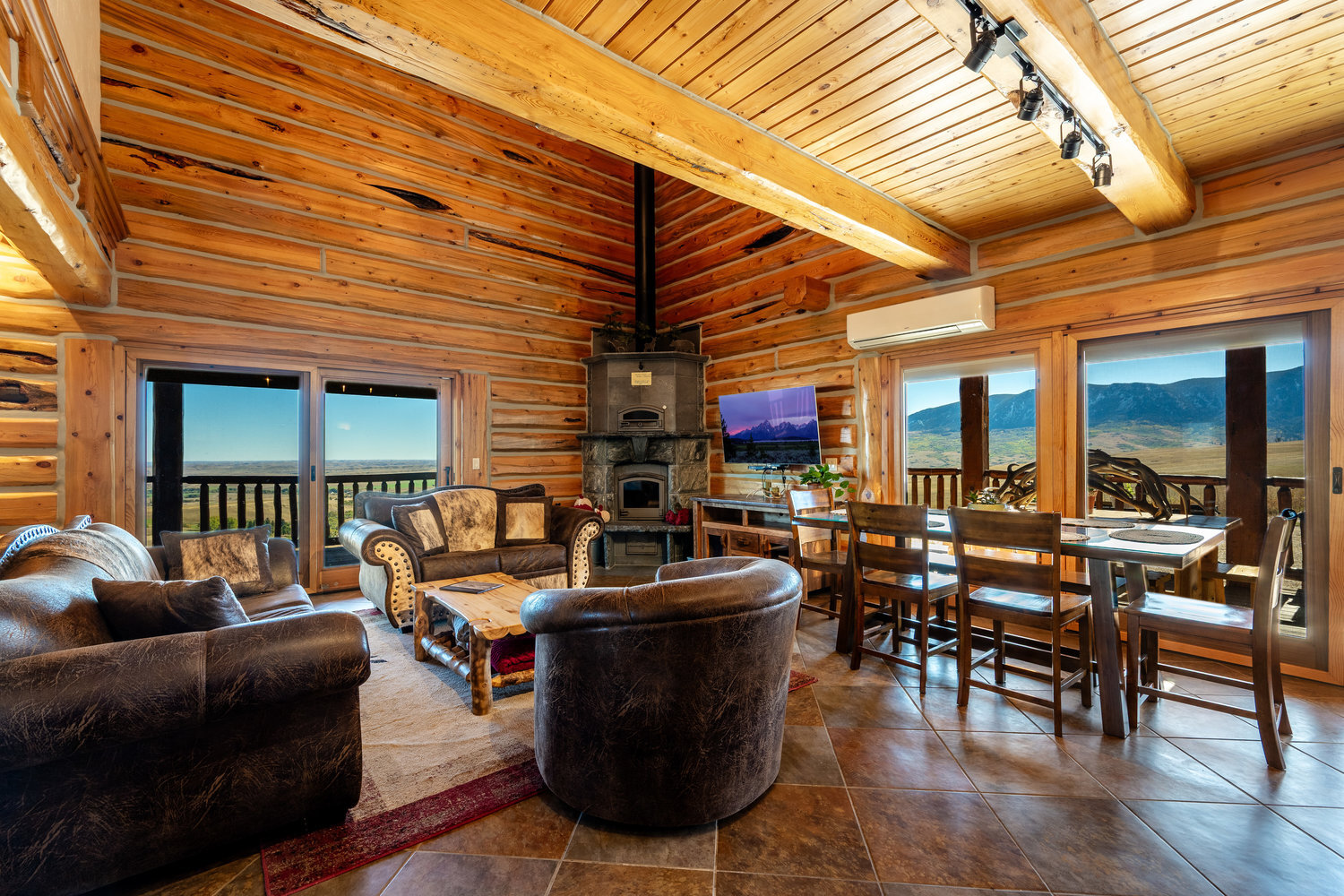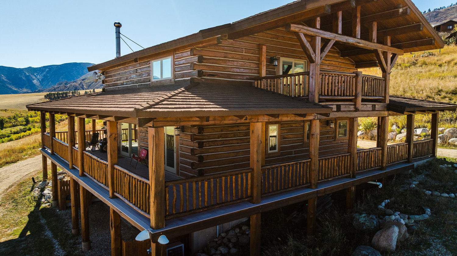 Dreaming of a cabin in the Big Horn Mountains but want the comfort and convenience of year-round accessibility? This custom log home on 5.66 acres is truly a showstopper! Featuring two spacious bedrooms, each with its own en-suite bath, plus an additional half bath on both the main level and in the basement, this home combines mountain charm with modern luxury. Inside, you'll find high-end upgrades and exceptional finishes throughout, showcasing quality craftsmanship and attention to detail. Step outside to enjoy breathtaking panoramic views of the Big Horn Mountains and the valley below.