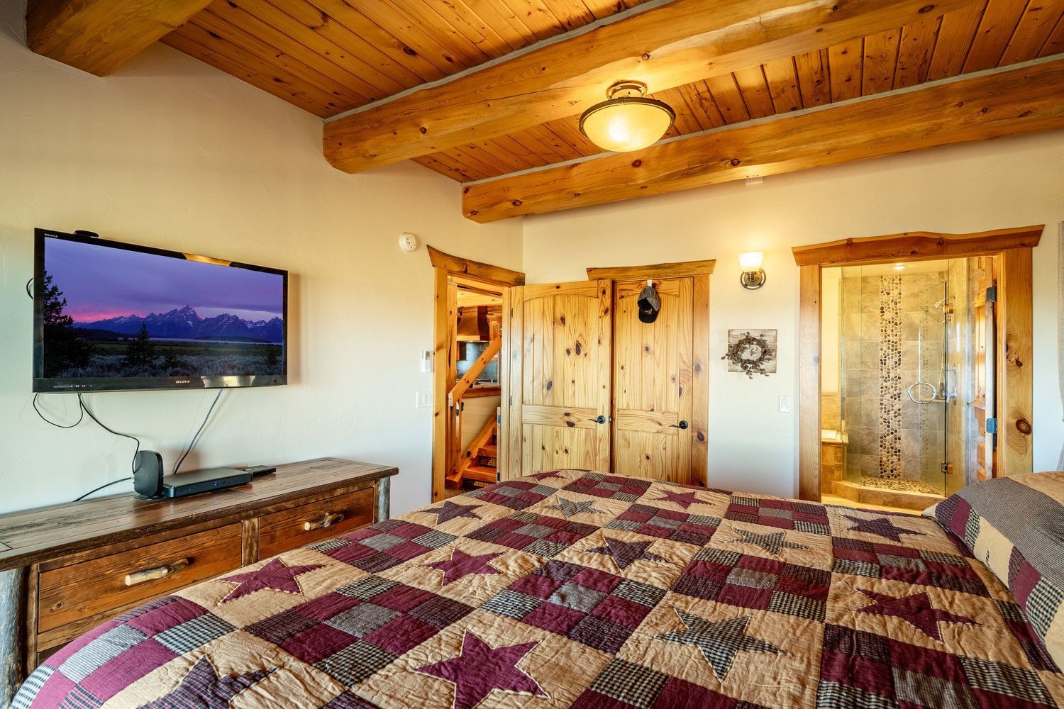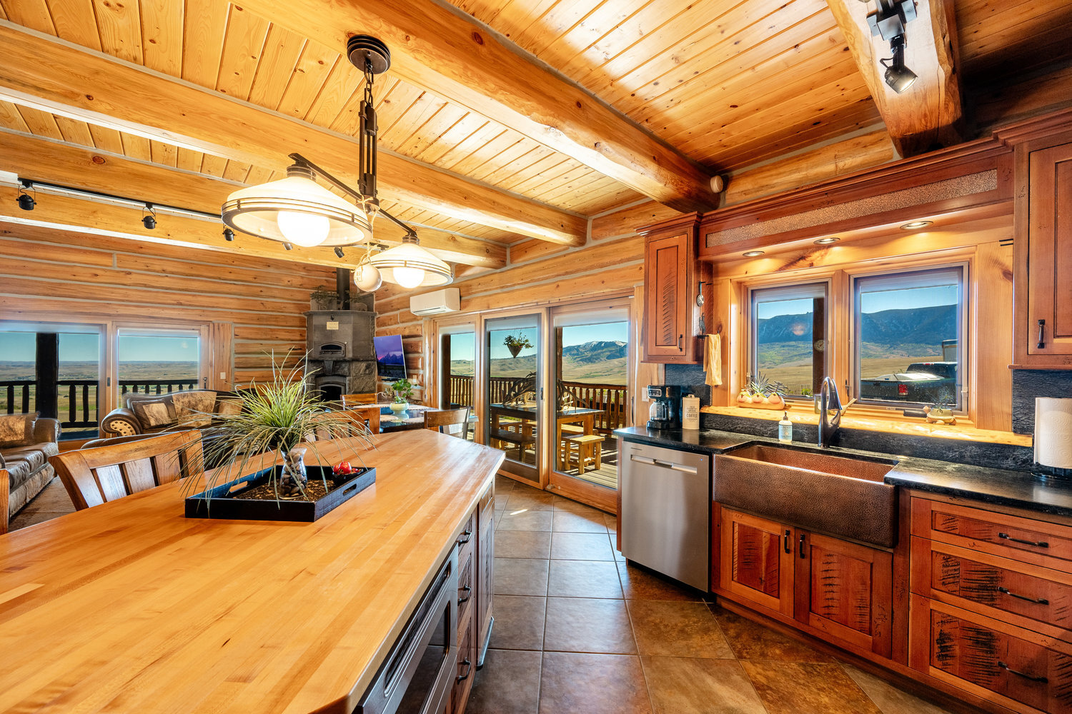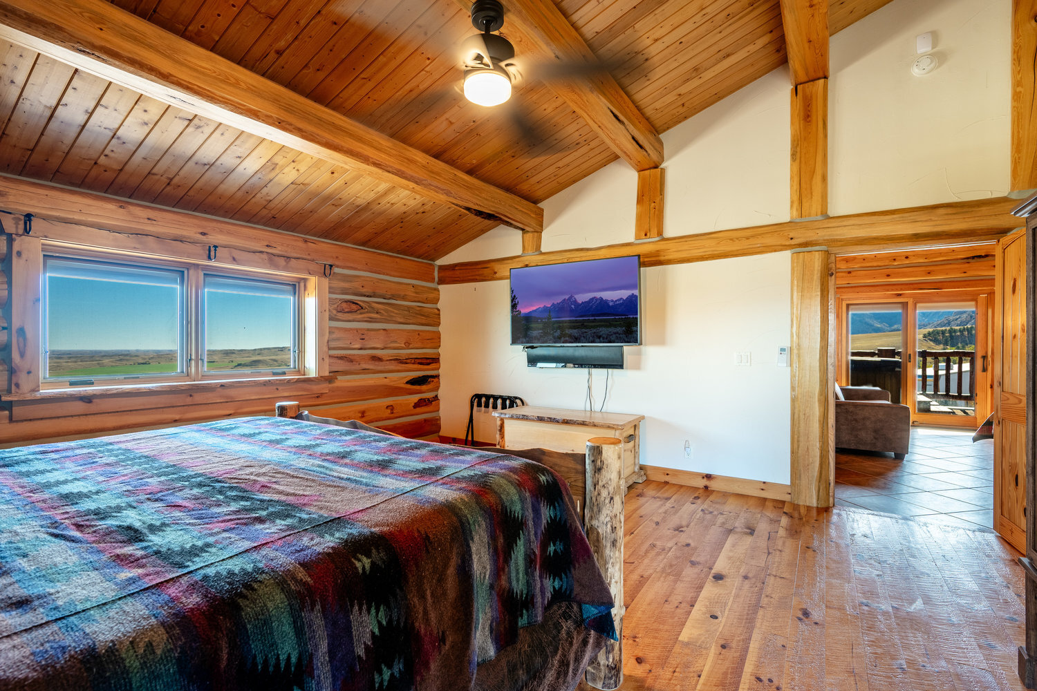 Dreaming of a cabin in the Big Horn Mountains but want the comfort and convenience of year-round accessibility? This custom log home on 5.66 acres is truly a showstopper! Featuring two spacious bedrooms, each with its own en-suite bath, plus an additional half bath on both the main level and in the basement, this home combines mountain charm with modern luxury. Inside, you'll find high-end upgrades and exceptional finishes throughout, showcasing quality craftsmanship and attention to detail. Step outside to enjoy breathtaking panoramic views of the Big Horn Mountains and the valley below.