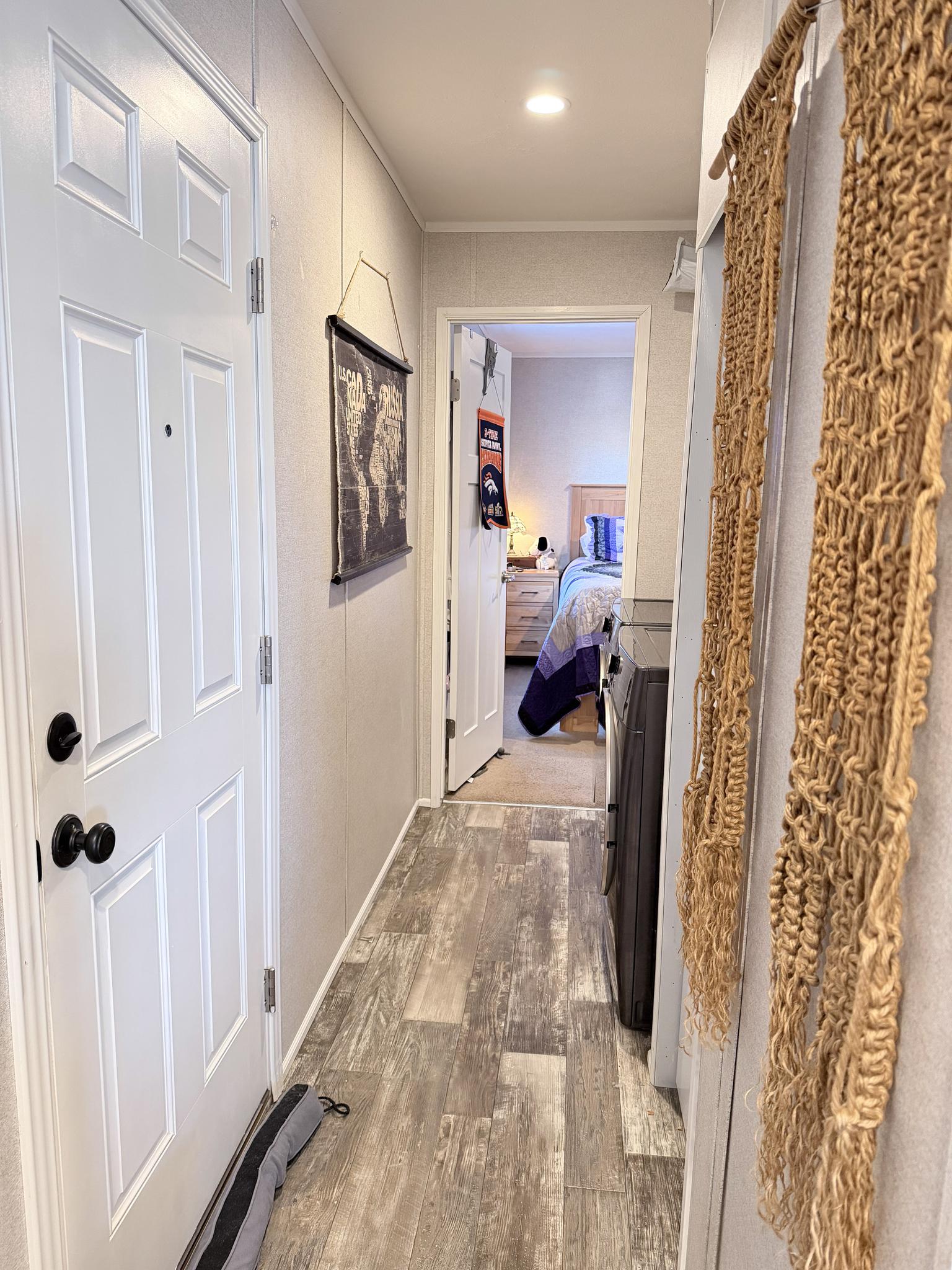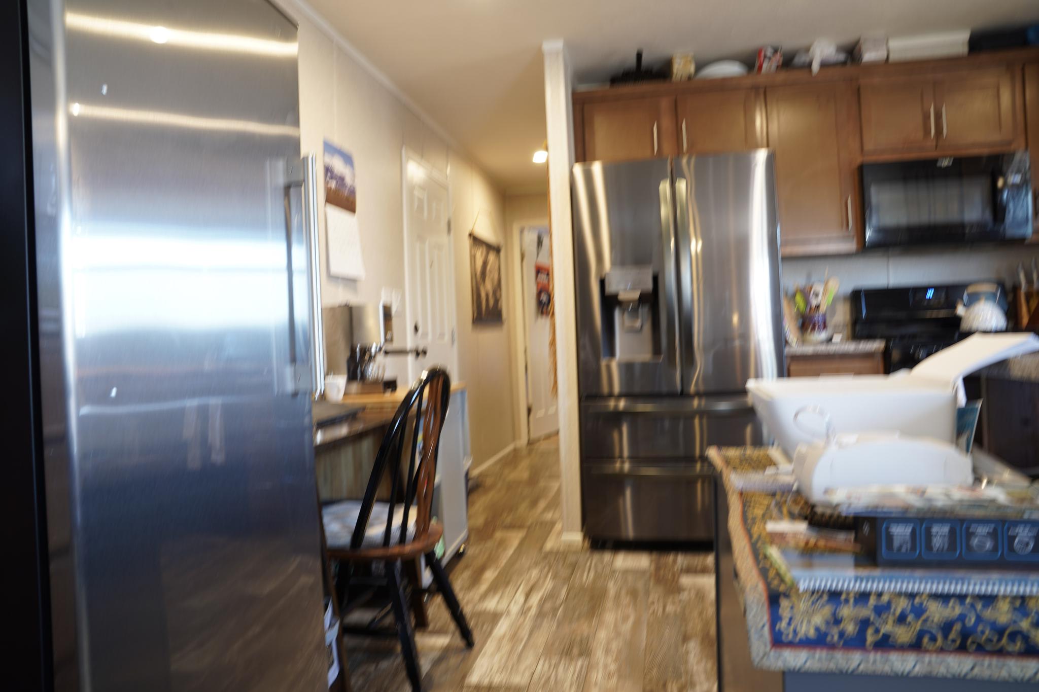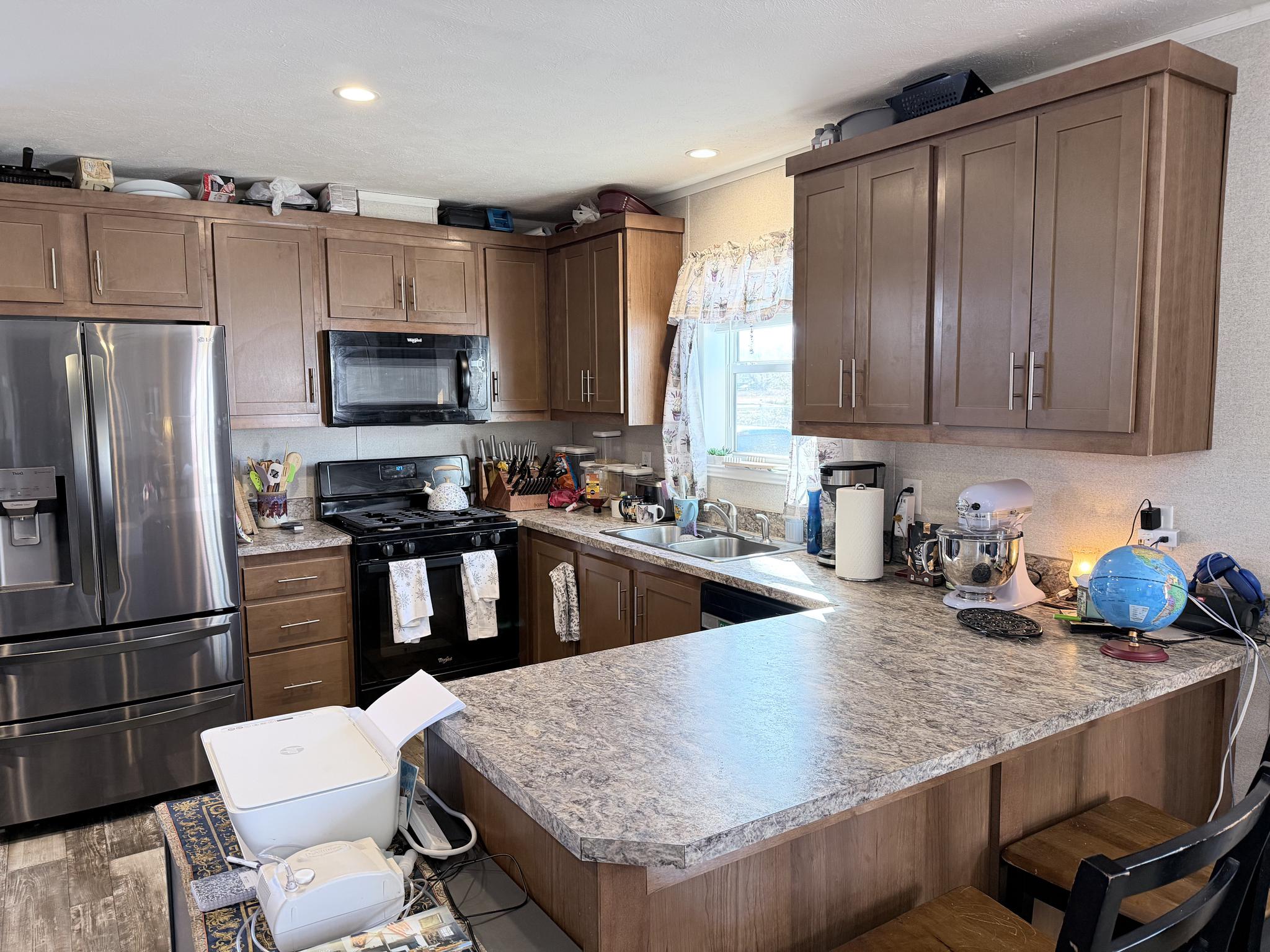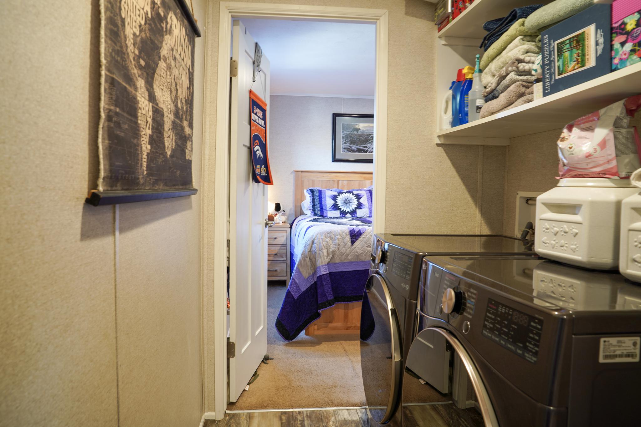 Arrive home to a well-kept, one-owner 2020 manufactured home that feels quietly inviting from the start. The kitchen is anchored by rich, dark cabinetry and quality appliances. With two bedrooms and two bathrooms, the layout offers breathing room for guests, a workspace, or simply a bit more privacy. Step outside and you'll find a yard that feels thoughtfully composed: fully fenced, layered with flowers and plantings, and finished with a flagstone patio. A covered carport adds practical shelter, and the hickory shed is a welcome bonus for storage, projects, and all the extras that come with everyday life. NO REAL ESTATE. Mobile Home only. Park manager approval required. Buyer to review and verify all lease terms; due diligence encouraged.