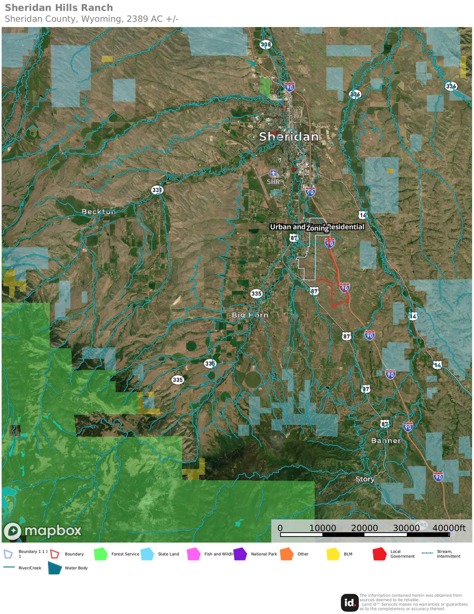 Sheridan Hills Ranch lies at the gateway to one of Wyoming’s most prestigious residential and recreational areas. The northwestern border of the ranch directly meets the City of Sheridan, while the southern portion flows naturally toward Big Horn, creating a seamless connection between two of the region’s most desirable communities.