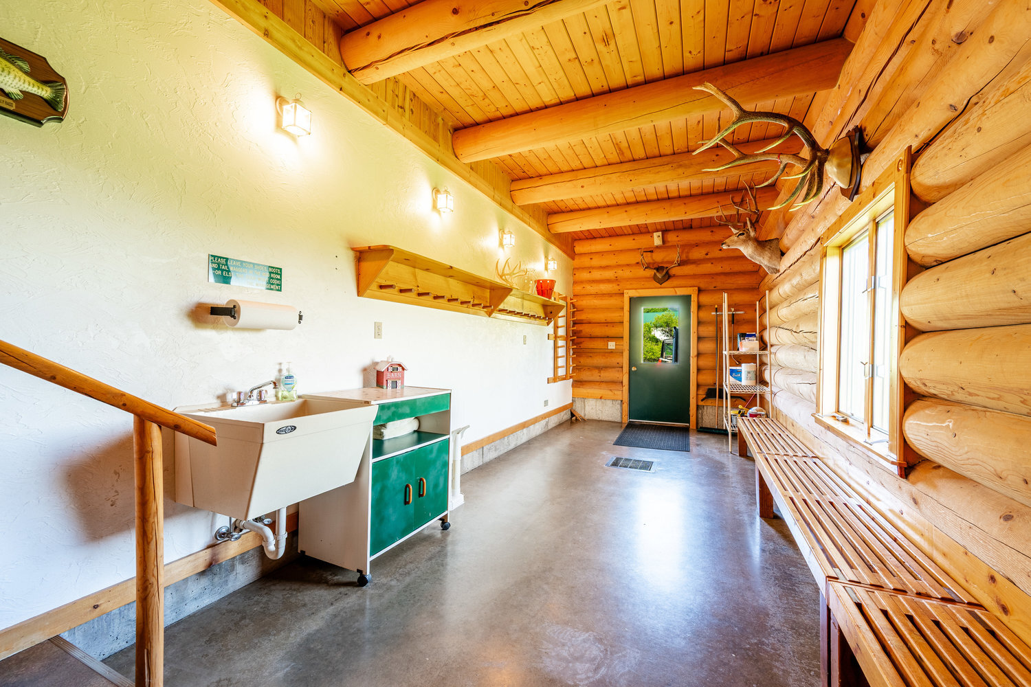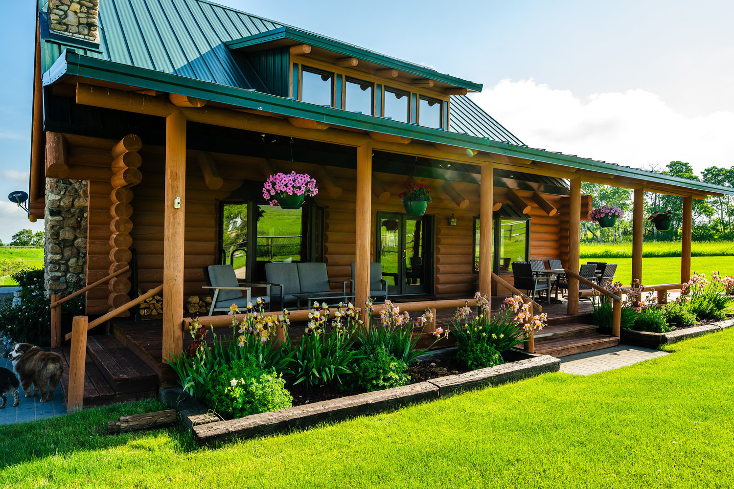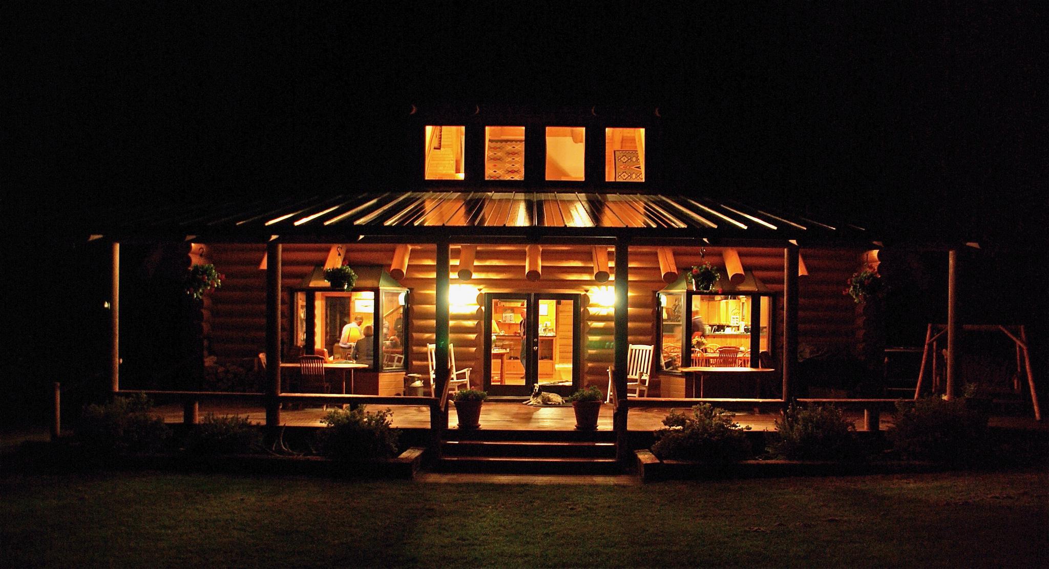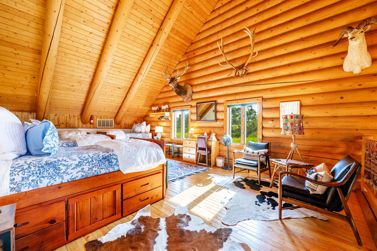 Lodge: This beautiful 3006 Sq. ft. 1 1/2 story, 2 bedroom, 4 bath log home with a sleeping loft was built in 1993. The Lodge is set in a wonderfully peaceful location just to the east of the main buildings and enjoys the full panoramic views of little Goose Canyon and Moncrieffe Ridge.