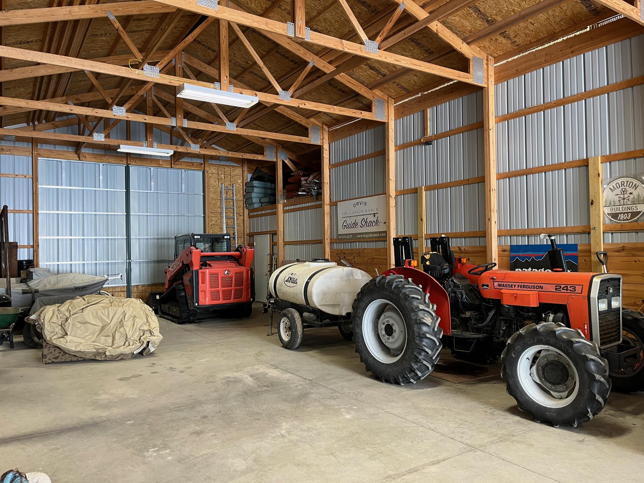 Farm Shed: The old 3-sided shop building is now used for storage. The building is 512 Sq. ft with dog kennels on south end. 1950